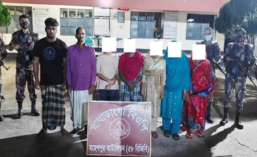 মঙ্গলবার ঝিনাইদহের মহেশপুর সীমান্তে অভিযান চালিয়ে তাদের আটক করা হয়। মহেশপুর ৫৮ বিজিবি ব্যাটালিয়নের সহকারী পরিচালক মুন্সি ইমদাদুর রহমানের পাঠানো প্রেস বিজ্ঞপ্তিতে এ তথ্য জানান হয়েছে।