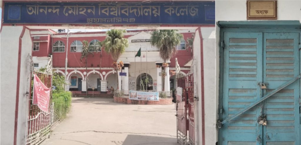 শতবর্ষের ঐতিহ্যে লালিত আনন্দ মোহন কলেজ বাংলাদেশের শ্রেষ্ঠ কলেজগুলোর অন্যতম। এ কলেজের রয়েছে এক সমৃদ্ধ ও গৌরবোজ্জ্বল ইতিহাস। আনন্দ মোহল কলেজ ১৯০৮ সালে প্রতিষ্ঠিত হলেও এর কার্যক্রম শুরু হয় ১৯০৯ সাল থেকে। এই মহান উদ্যোগের সঙ্গে যাঁর নাম জড়িয়ে আছে, তিনি হচ্ছেন অন্যতম শ্রেষ্ঠ বাঙালি শিক্ষাবিদ, রাজনীতিক, সমাজসংস্কারক ব্যারিস্টার আনন্দমোহন বসু। এক সময় এ কলেজে ৫০ থেকে ১০০ জন শিক্ষার্থী থাকলেও বর্তমানে ৩৫ হাজারেরও বেশি শিক্ষার্থী, দুই শতাধিক শিক্ষক ও কর্মচারী কর্মরত রয়েছে এ কলেজে। বৃহত্তর ময়মনসিংহকে শিক্ষা নগরী বলার অন্যতম কারনের মধ্যে একটি এ কলেজ। সম্প্রতি এ কলেজে অধ্যক্ষ সংকটে অনেকটাই থমকে গেছে শিক্ষা কার্যক্রম। গত (৩ আগস্ট) আনন্দ মোহন কলেজের অধ্যক্ষ আমান উল্লাহকে ওএসডি (বিশেষ ভারপ্রাপ্ত কর্মকর্তা) করা হয়। পরে ভারপ্রাপ্ত অধ্যক্ষ হিসেবে দায়িত্ব গ্রহণ করেন উপাধ্যক্ষ সাকির হোসেন। দায়িত্ব নেওয়ার পর থেকেই তাকে ঘিরে শিক্ষার্থীদের একটি অংশের মধ্যে অসন্তোষ সৃষ্টি হয়। ভারপ্রাপ্ত অধ্যক্ষের ভাই বৈষম্য বিরোধী ছাত্র আন্দোলনে নিহত সাগর হত্যার আসামি হওয়ায় তার পদত্যাগ দাবি করেন। এরপর ১৮ আগষ্ট শিক্ষার্থীদের লাগাতার স্লোগানের মুখে সাকির হোসেন কলেজের চলমান সংকট সমাধান না হওয়া পর্যন্ত দায়িত্ব পালন করবেন না মর্মে লিখিত মুচলেকা দেন। এরপর তিনি শিক্ষার্থীদের তোপের মুখে ক্যাম্পাস থেকে বের হয়ে যান। এরপর থেকেই অধ্যক্ষ-উপাধ্যক্ষ বিহীন চলছে শিক্ষা কার্যক্রম। এ নিয়ে অনেকটাই আতংক বিরাজ করছে শিক্ষক-শিক্ষার্থীরা ও কর্মচারীদের মধ্যে। কেউ কেউ বলছেন আমরা এখন অভিভাবক বিহীন, কেউ কেউ বলছেন সাবেক অধ্যক্ষ আমান উল্লাহই ভালো ছিলো, আন্দোলনরত শিক্ষার্থীরা বলছেন, দ্রুত নতুন অধ্যক্ষ নিয়োগের জন্য জেলা প্রশাসক বরাবর স্মারকলিপি দিয়েছেন। তারা বলছেন, চলমান সংকট দ্রুত কেটে যাবে। আমরা দ্রুত অধ্যক্ষ নিয়োগের জন্য জেলা প্রশাসক বরাবর স্মারকলিপি দিয়েছি।এইচএসসি পড়ুয়া তাহমিদ ইবনে নামে আরেক শিক্ষার্থী বলেছেন, আমাদের আজকের প্রাকটিক্যাল পরীক্ষা তাই কলেজে এসেছি। অধ্যক্ষ স্যার না থাকায় অনেক ক্ষেত্রে হয়তোবা সমস্যা হচ্ছে। প্রশ্নের জবাবে তিনি আরোও বলেন, অধ্যক্ষ আমান উল্লাহ স্যার অনেকের মধ্যে ভালো ছিলো।