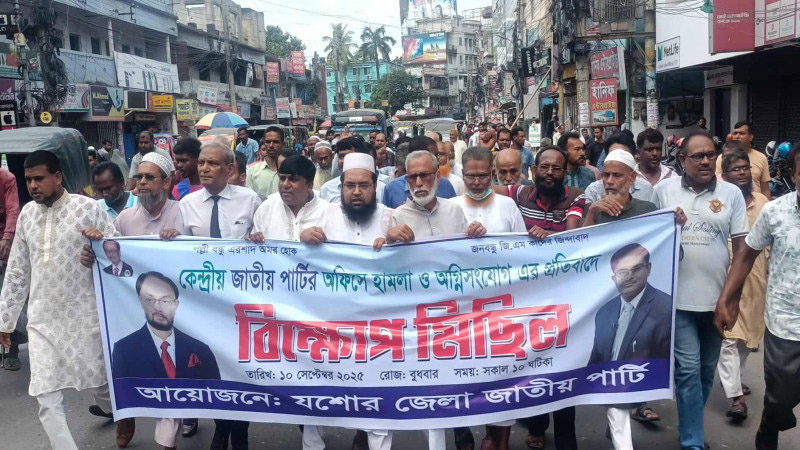 জাতীয় পার্টির অফিসে ভাঙচুর ও অগ্নিসংযোগের প্রতিবাদে যশোরে বিক্ষোভ