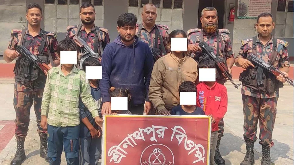 ঝিনাইদহের মহেশপুর সীমান্তে অভিযান চালিয়ে সাত ভারতীয় নাগরিকসহ ১১ জনকে আটক করেছে বিজিবির ৫৮ ব্যাটালিয়ন। এদের মধ্যে মহেশপুর সীমান্তের শ্রীনাথপুর হালদারপাড়া এলাকা থেকে একই পরিবারের ৭ ভারতীয় নাগরিক আটক হয়েছেন। আটককৃতরা হলেন ভারতের মুর্শিদাবাদ জেলার ফারাক্কা থানার টিলঢাঙা গ্রামের মোঃ শাহজাহান (৩৫), তার স্ত্রী মোছাঃ তৈয়বা বেগম (৩০) এবং তাদের পাঁচ সন্তান যথাক্রমে মোঃ ইমরান (১২), মোঃ ইফরান (১০), মোঃ আয়ান (৮), মোঃ জিদান (৬) ও মোছাঃ সায়দা খানম।