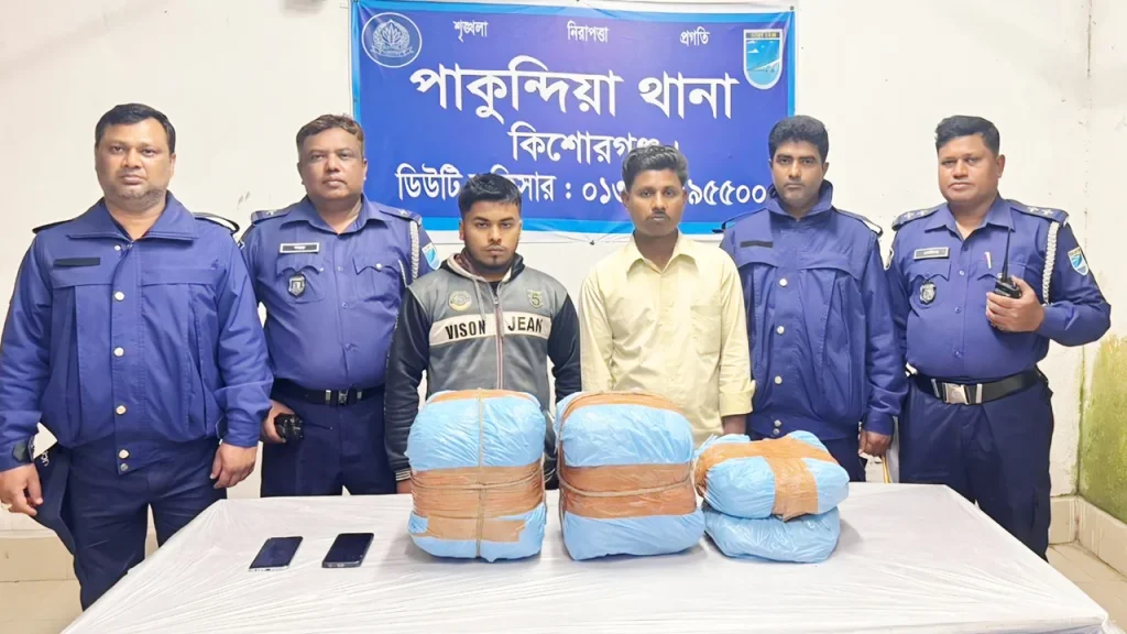 পাকুন্দিয়া থানার ওসি (তদন্ত) মো. মোবারক হোসেন আটকের তথ্যটি নিশ্চিত করেছেন। তিনি বলেন, আটককৃতদের বিরুদ্ধে মাদকদ্রব্য নিয়ন্ত্রণ আইনে মামলা হয়েছে। ওই মামলায় তাদের গ্রেফতার দেখিয়ে আদালতে পাঠানো হয়েছে।